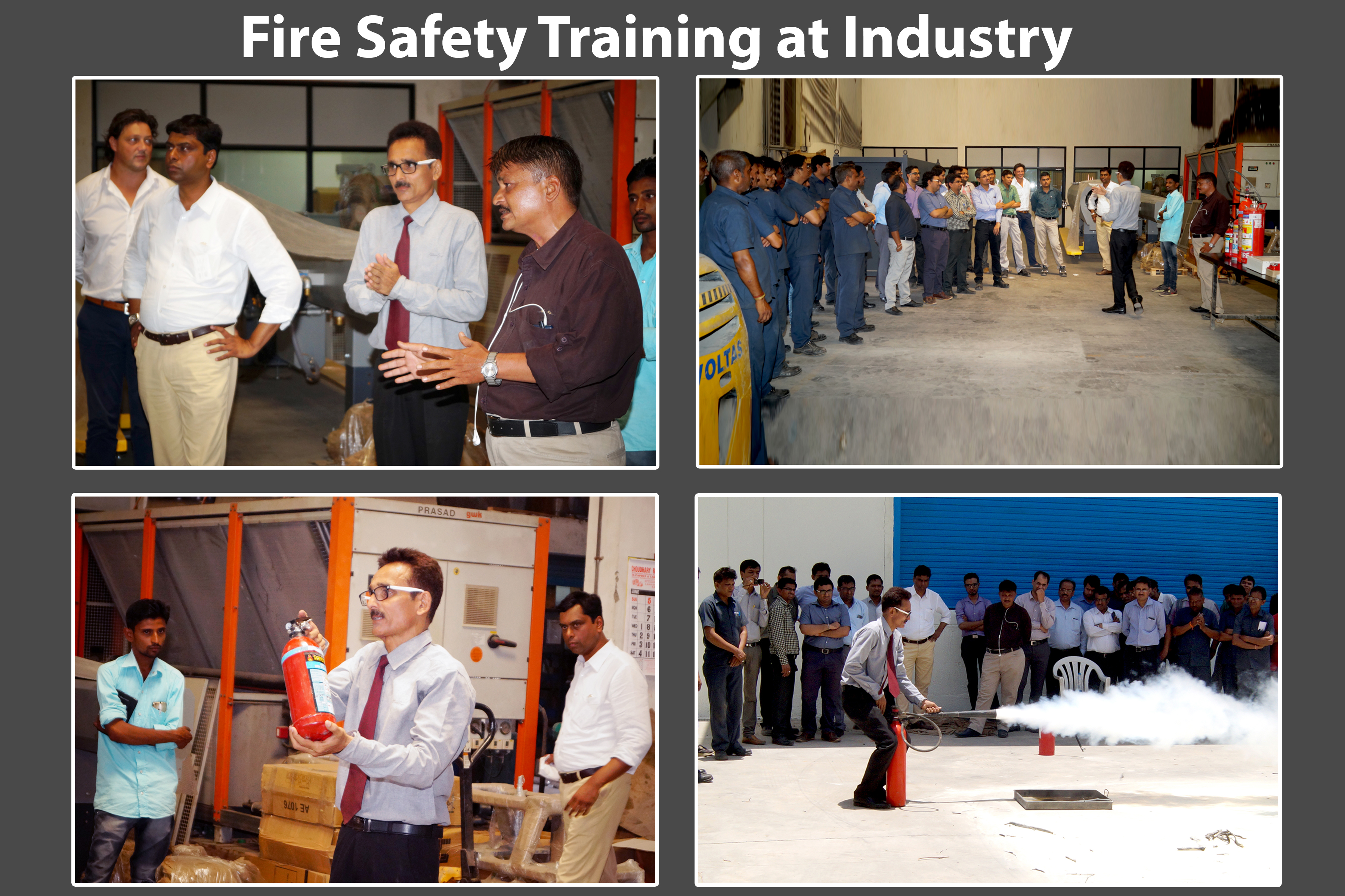 - He will then inform that at what kind of fire–what kind ofextinguishershouldbe used. He will then ignite the fire and will show how to extinguish it. He will call Participants to conduct it.