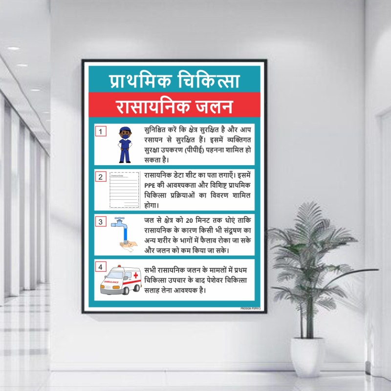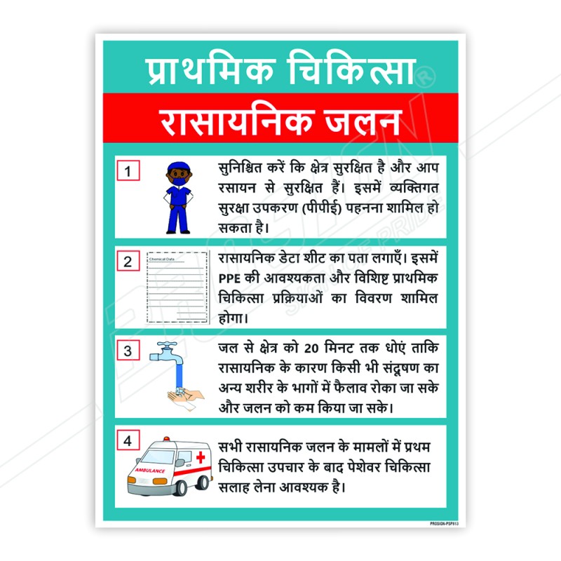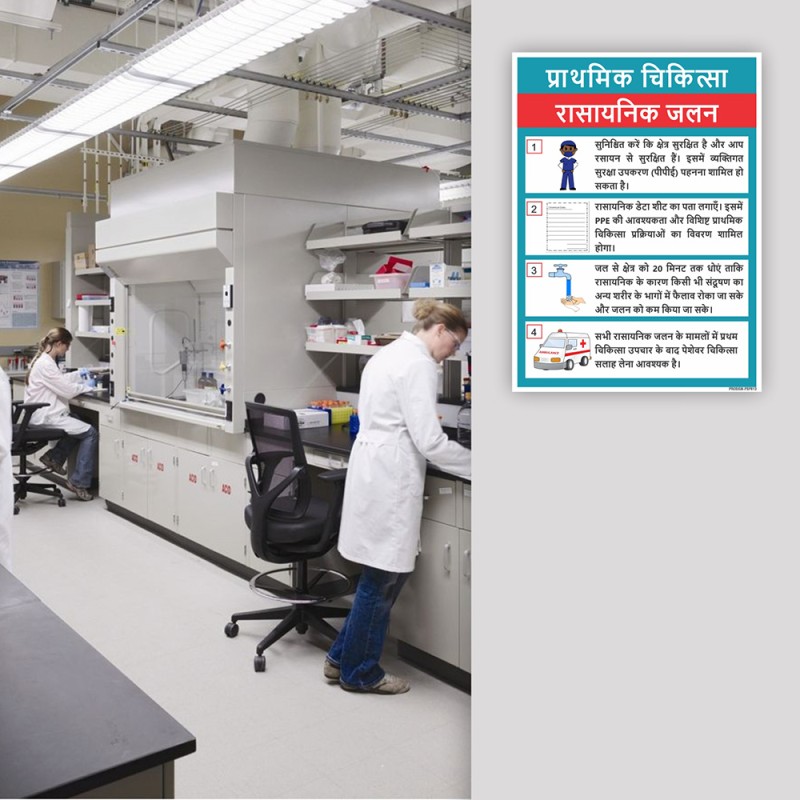 Chemical Burn First Aid In Hindi Safety Posters